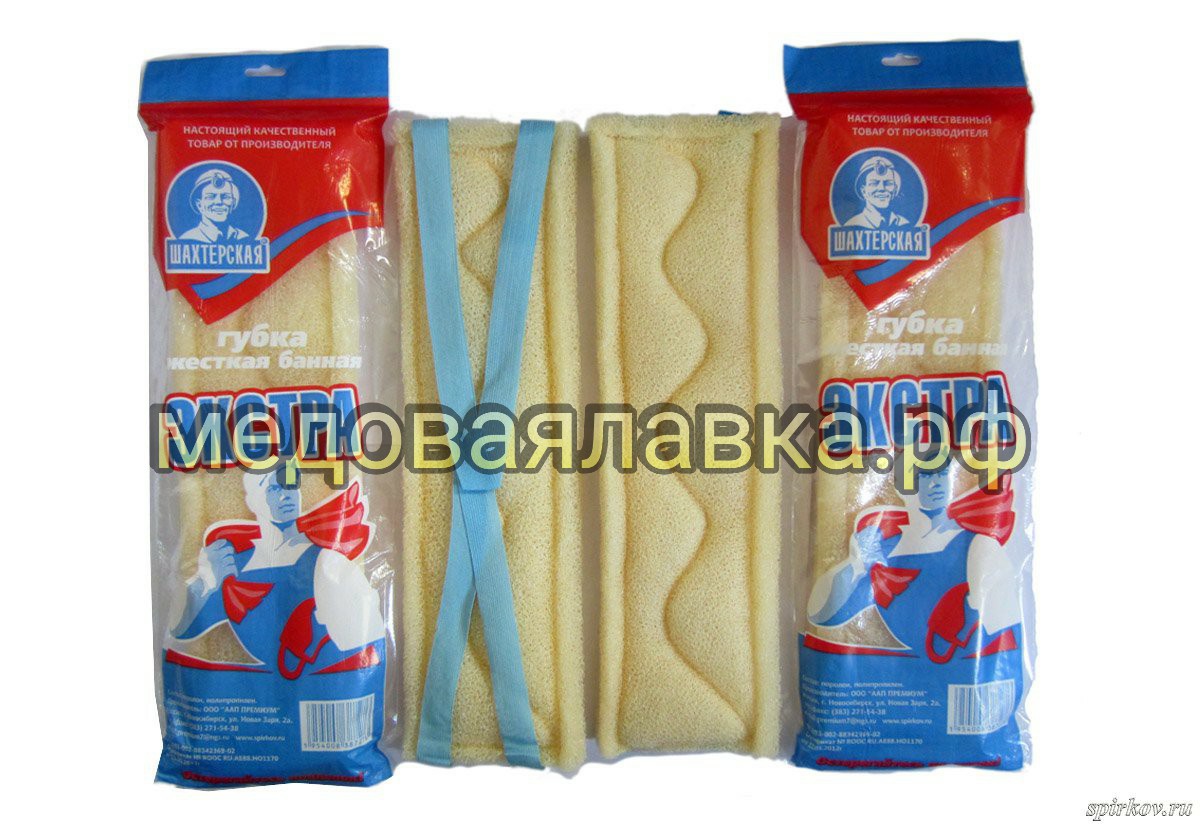 Губка жесткая банная - ШАХТЕРСКАЯ ЭКСТРА – особо прочная разновидность банной мочалки «Шахтерская», как поролона, так и надежности ручек. Жесткая, для активного мытья и энергичного массажа, отлично намыливается и держит пену, с абсолютным ощущением как после парной с березовым веником!